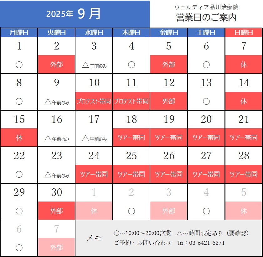 治療院営業日は通常の営業時間外でも対応できる場合がありますので、